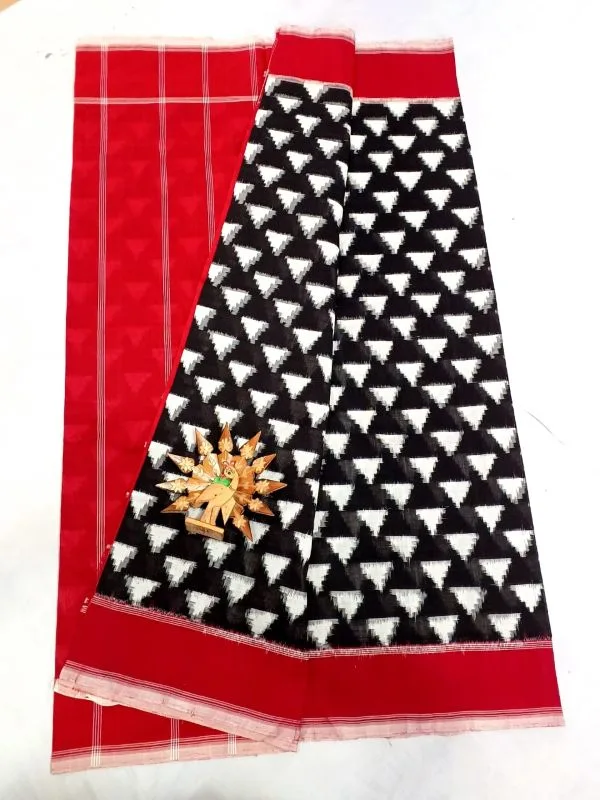 Pochampally Ikkat Telia Rumal Mercerized Cotton Sarees With Blouse | Handloom Sarees