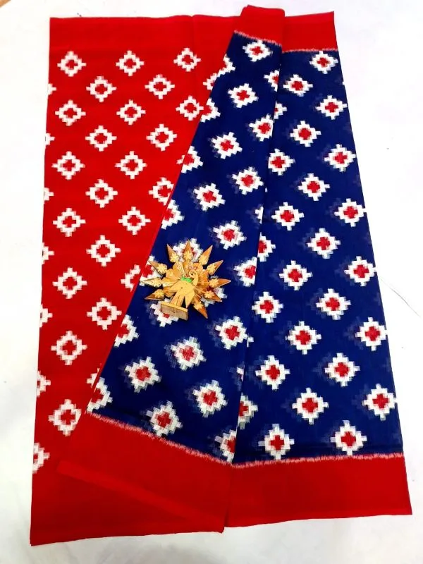 Ikkat Telia Rumal Cotton Sarees With Blouse – VHT60022