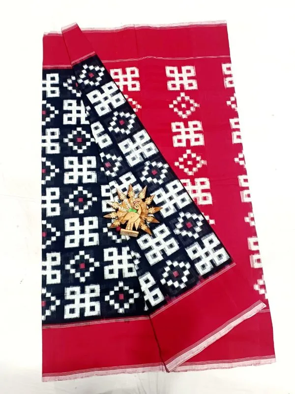 Pochampally Ikkat Telia Rumal Mercerized Cotton Sarees With Blouse | Handloom Sarees