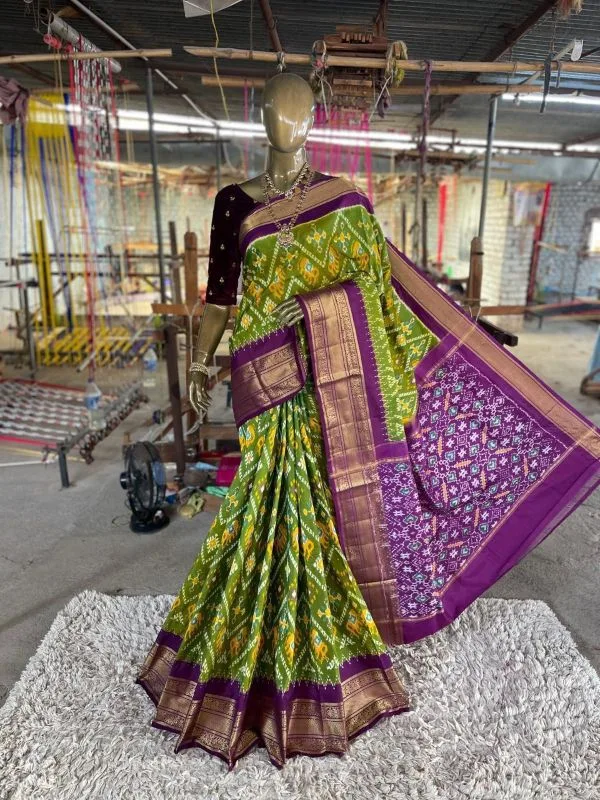 Double Ikkat Pochampally Silk Saree With Blouse | Handloom Sarees