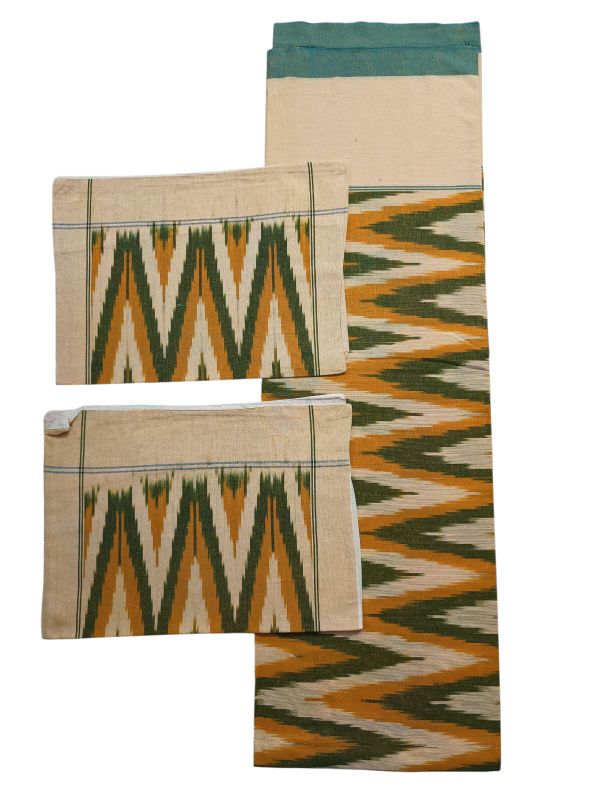 Pochampally Ikkat HandWovened 100% Cotton Double Bedsheet with 2 Pillow Covers – IKDB0005