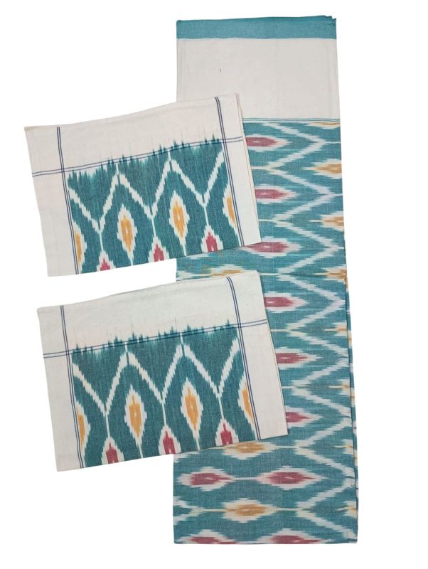 Pochampally Ikkat HandWovened 100% Cotton Double Bedsheet with 2 Pillow Covers – IKDB00035
