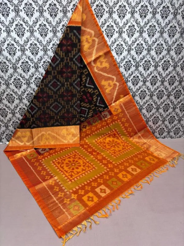 IkkatPure Ikkat Sico Silk Cotton Sarees, 8 Inch Border Handloom Saree With Blouse | Handloom Sarees