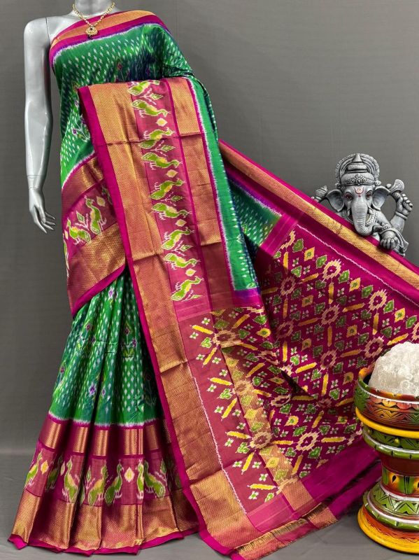Pochampally Double Ikkat Silk Sarees With Blouse | Handloom Sarees – PABS120001
