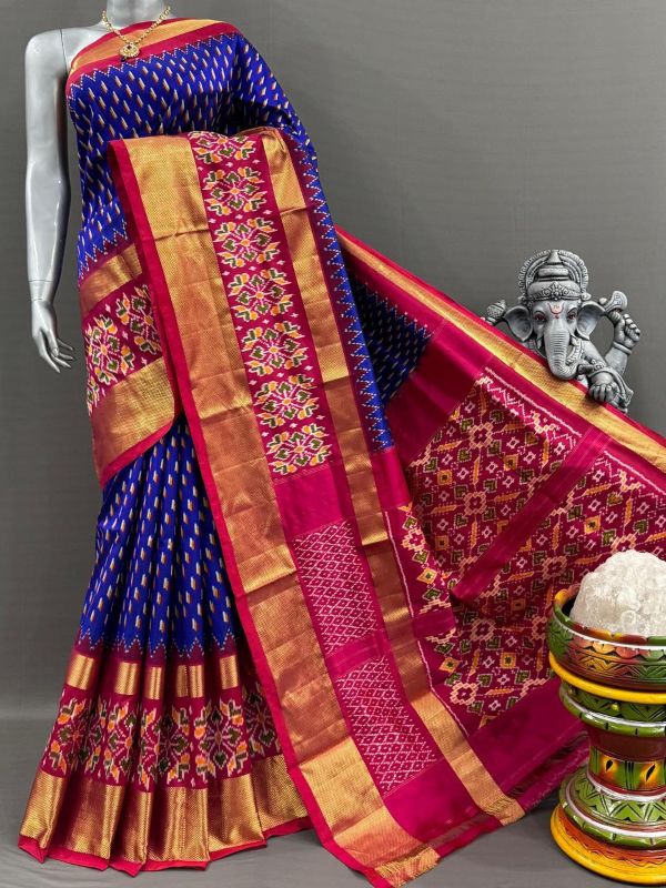 Pochampally Double Ikkat Silk Sarees With Blouse | Handloom Sarees – PABS120002