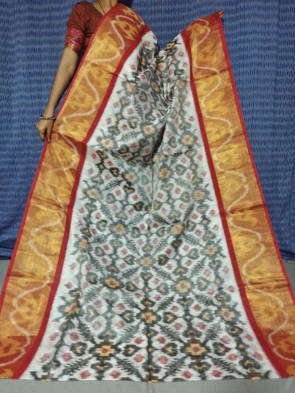 Pure Ikkat Sico Silk Cotton Sarees, 8 Inch Border Handloom Saree With Blouse – PRS8SICO00028