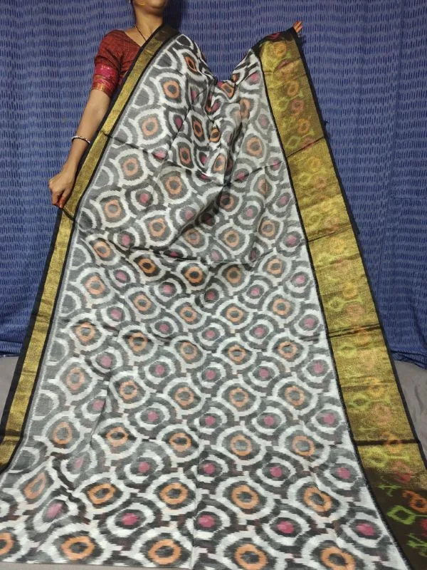 Pure Ikkat Sico Silk Cotton Sarees, 8 Inch Border Handloom Saree With Blouse