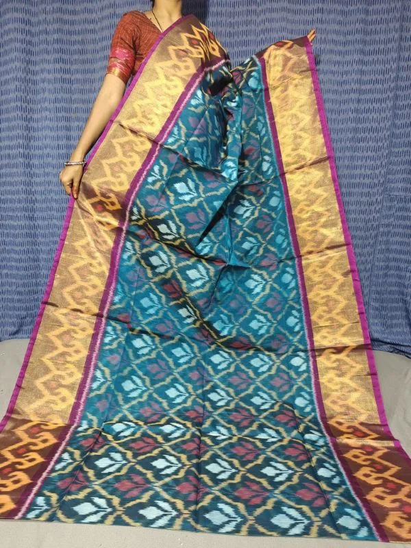Pure Ikkat Sico Silk Cotton Sarees, 8 Inch Border Handloom Saree With Blouse – PRS8SICO00040