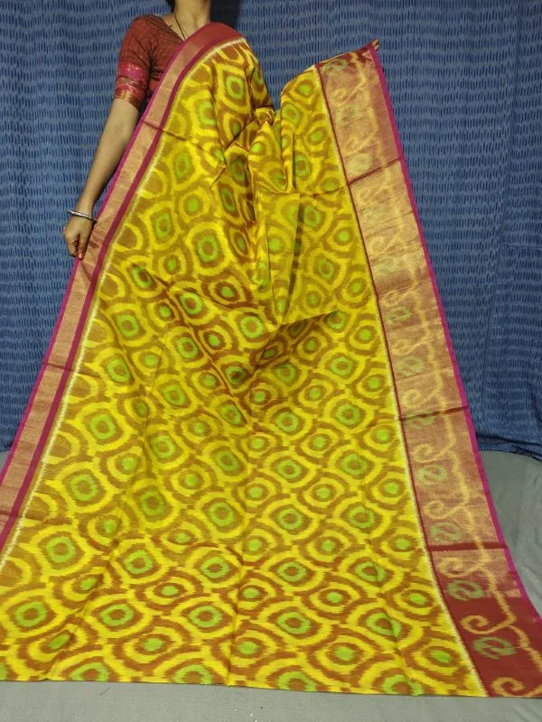 Pure Ikkat Sico Silk Cotton Sarees, 8 Inch Border Handloom Saree With Blouse – PRS8SICO00041