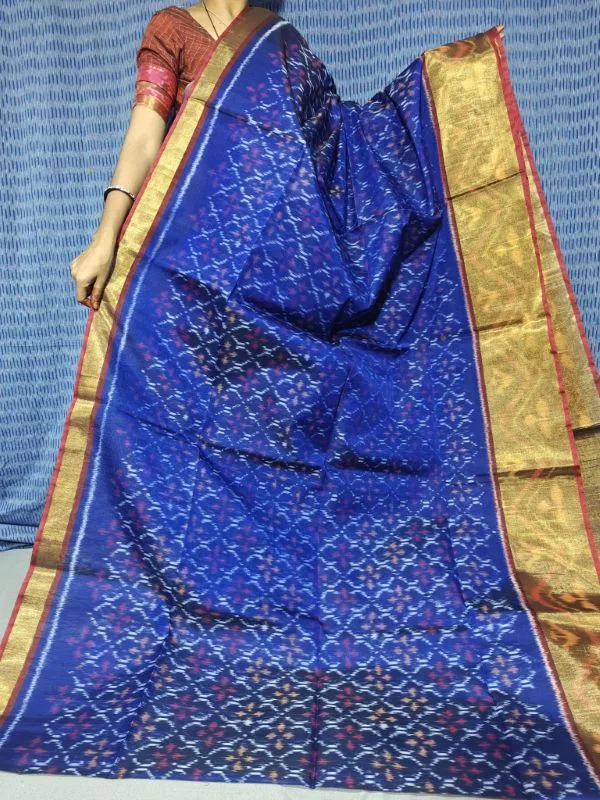 Pure Ikkat Sico Silk Cotton Sarees, 8 Inch Border Handloom Saree With Blouse – PRS8SICO00017