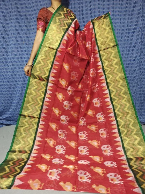 Pure Ikkat Sico Silk Cotton Sarees, 8 Inch Border Handloom Saree With Blouse – PRS8SICO00018