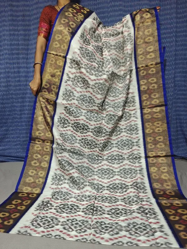 Pure Ikkat Sico Silk Cotton Sarees, 8 Inch Border Handloom Saree With Blouse – PRS8SICO00019