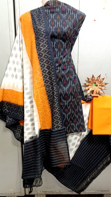 Double Ikkat Pochampally Handloom Unstitched Ethnic Dress Materials