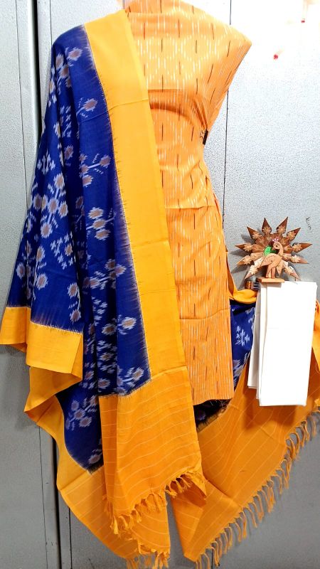 Double Ikkat Pochampally Handloom Unstitched Ethnic Dress Materials