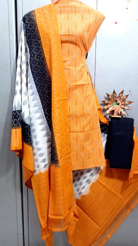 Double Ikkat Pochampally Handloom Unstitched Ethnic Dress Materials