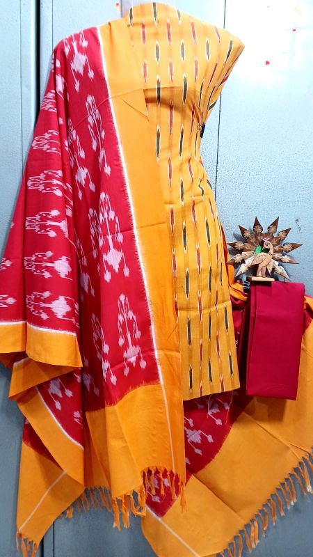 Double Ikkat Pochampally Handloom Unstitched Ethnic Dress Materials