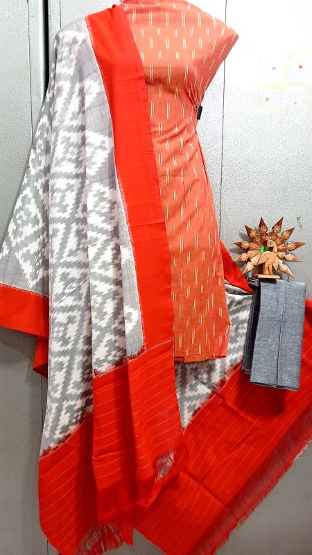 Double Ikkat Pochampally Handloom Unstitched Ethnic Dress Materials