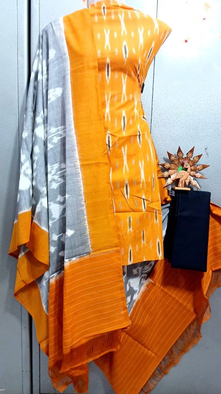 Double Ikkat Pochampally Handloom Unstitched Ethnic Dress Materials