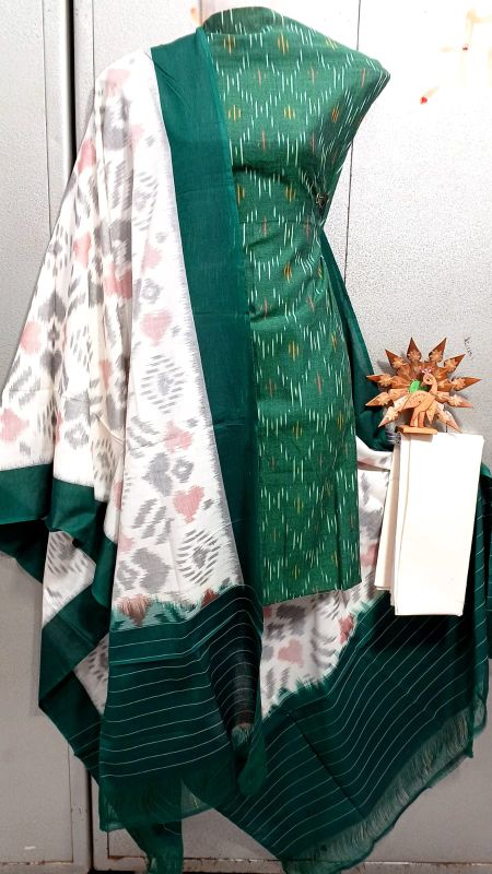 Double Ikkat Pochampally Handloom Unstitched Ethnic Dress Materials