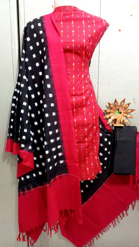 Double Ikkat Pochampally Handloom Unstitched Ethnic Dress Materials