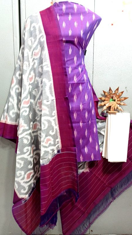 Double Ikkat Pochampally Handloom Unstitched Ethnic Dress Materials