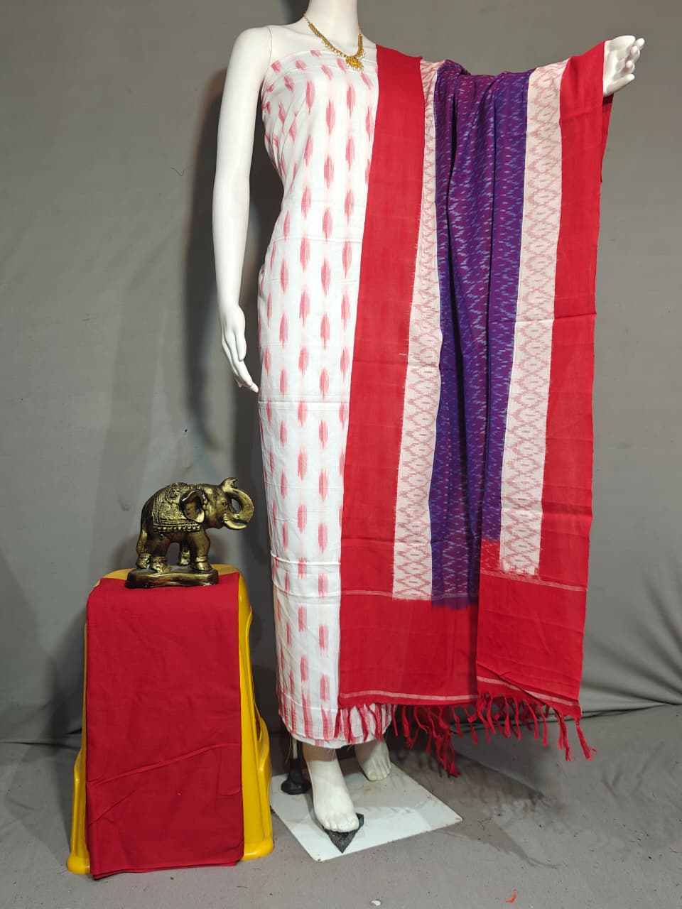 Pochampally Double Ikkat Cotton Dress Materials, Handloom Cotton Unstitched Ethnic Dress Materials