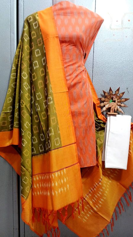 Double Ikkat Pochampally Handloom Unstitched Ethnic Dress Materials