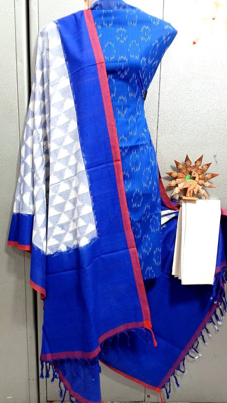 Double Ikkat Pochampally Handloom Unstitched Ethnic Dress Materials