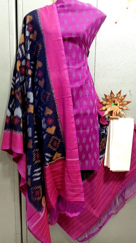 Double Ikkat Pochampally Handloom Unstitched Ethnic Dress Materials