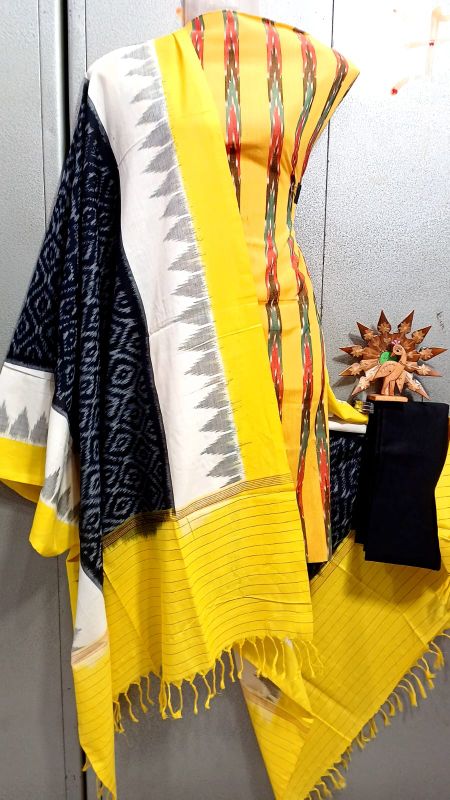 Double Ikkat Pochampally Handloom Unstitched Ethnic Dress Materials