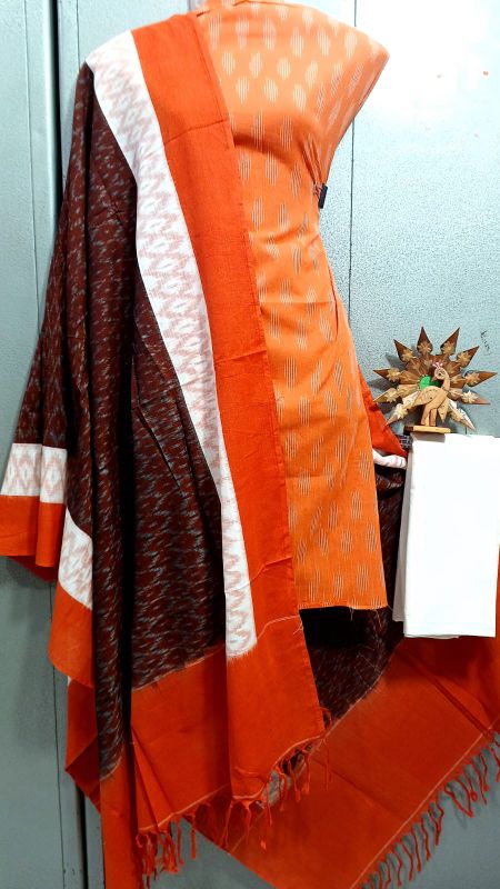 Double Ikkat Pochampally Handloom Unstitched Ethnic Dress Materials