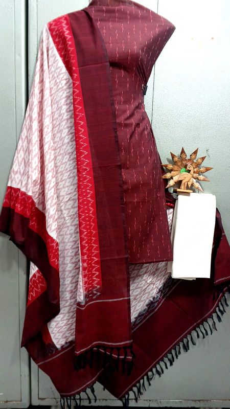 Double Ikkat Pochampally Handloom Unstitched Ethnic Dress Materials
