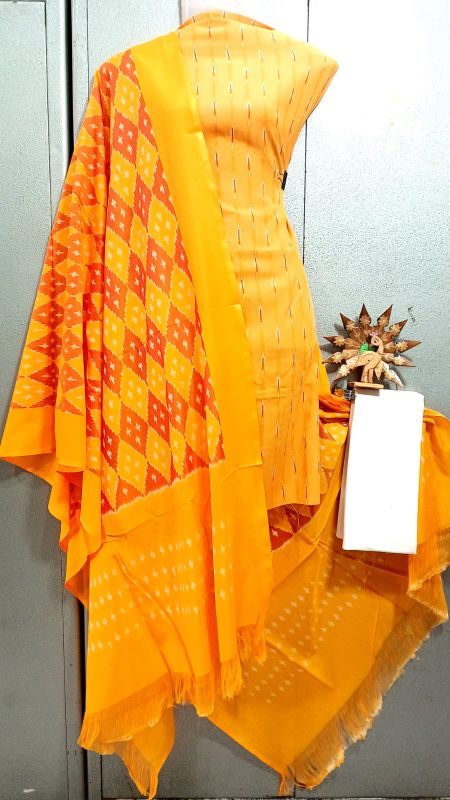 Double Ikkat Pochampally Handloom Unstitched Ethnic Dress Materials