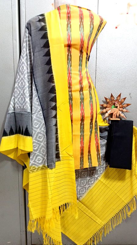 Double Ikkat Pochampally Handloom Unstitched Ethnic Dress Materials