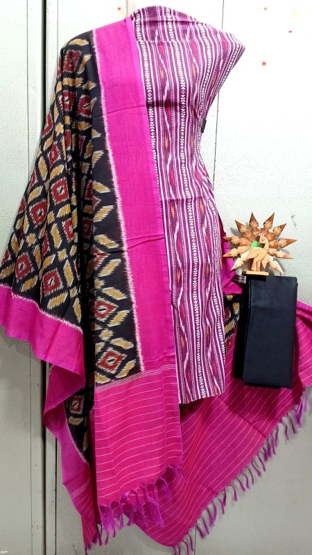 Double Ikkat Pochampally Handloom Unstitched Ethnic Dress Materials