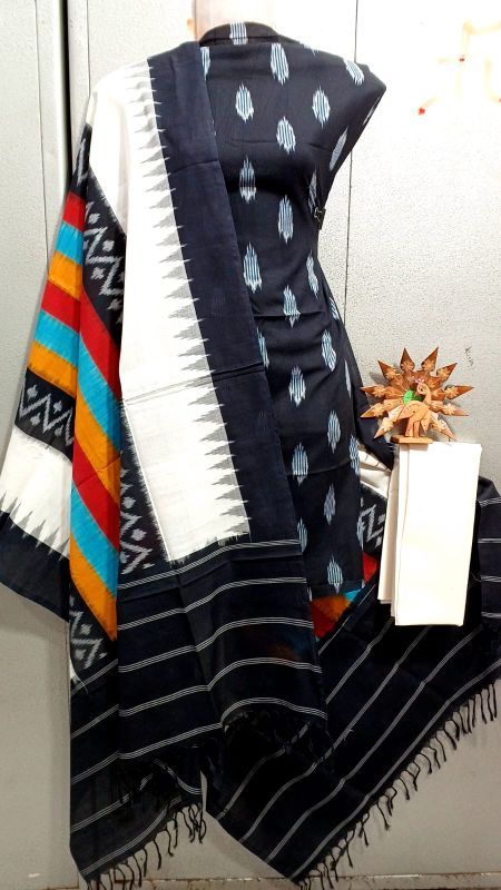 Double Ikkat Pochampally Handloom Unstitched Ethnic Dress Materials