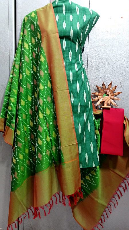 Double Ikkat Pochampally Handloom Unstitched Ethnic Dress Materials