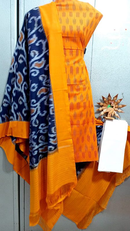 Double Ikkat Pochampally Handloom Unstitched Ethnic Dress Materials
