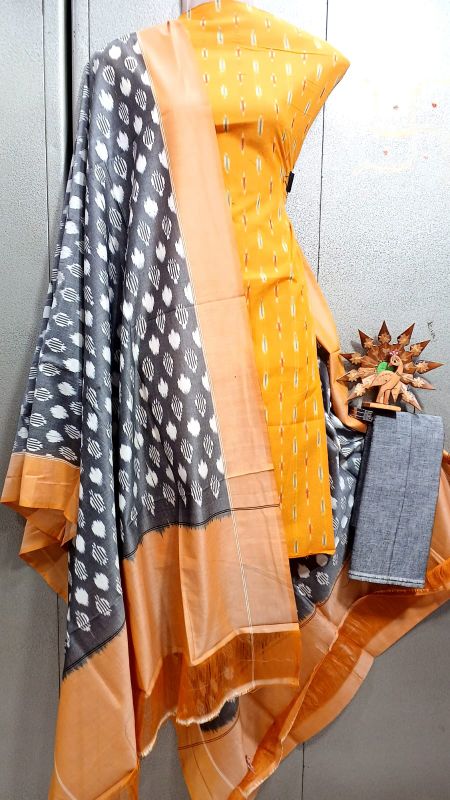 Double Ikkat Pochampally Handloom Unstitched Ethnic Dress Materials