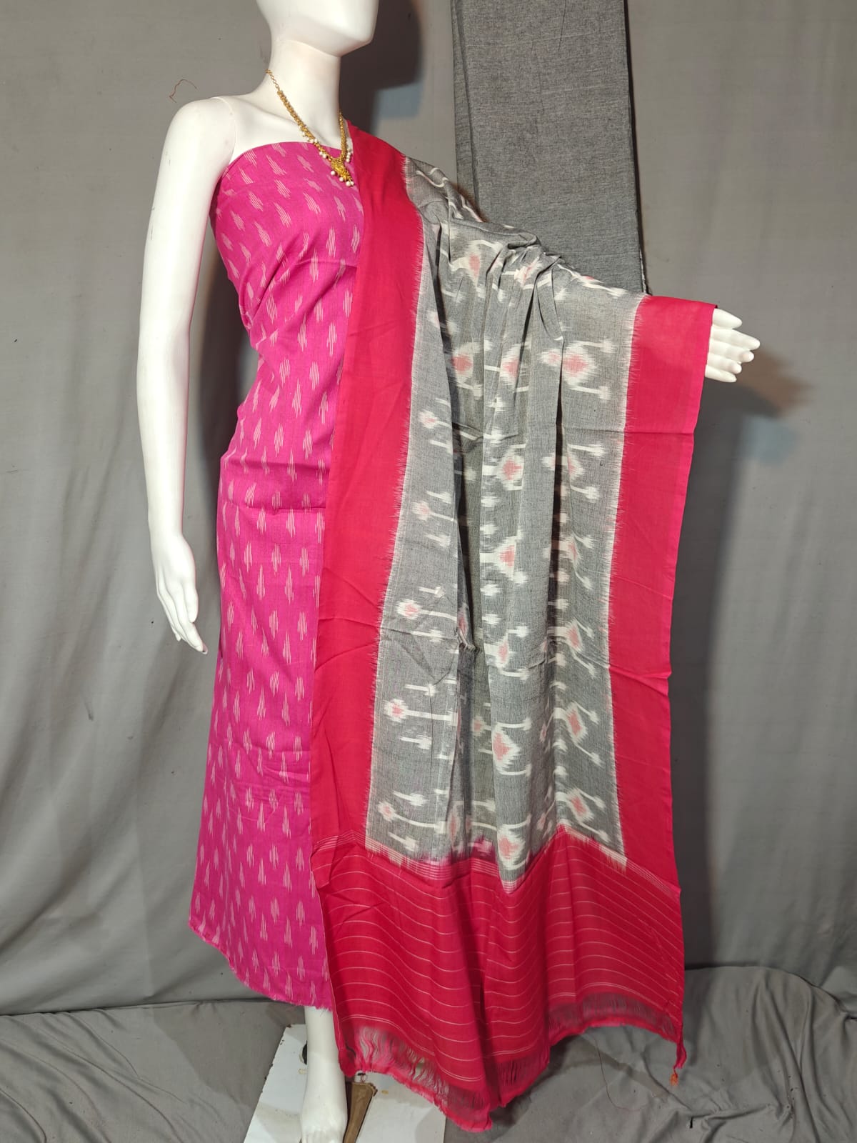 Double Ikkat Pochampally Handloom Unstitched Ethnic Dress Materials