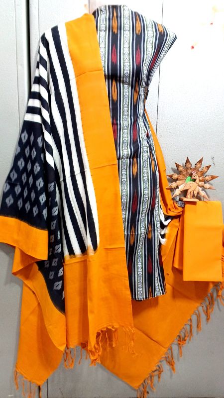 Double Ikkat Pochampally Handloom Unstitched Ethnic Dress Materials