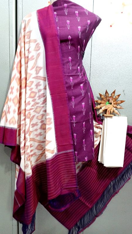 Double Ikkat Pochampally Handloom Unstitched Ethnic Dress Materials