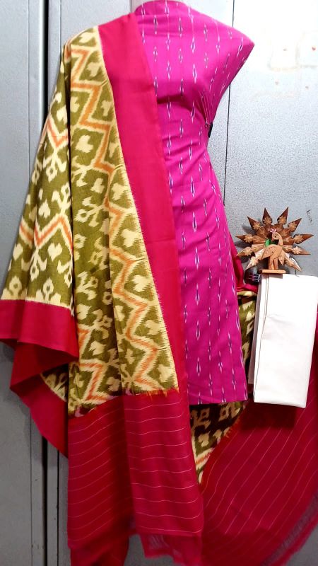 Double Ikkat Pochampally Handloom Unstitched Ethnic Dress Materials