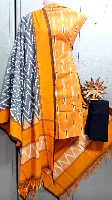 Double Ikkat Pochampally Handloom Unstitched Ethnic Dress Materials