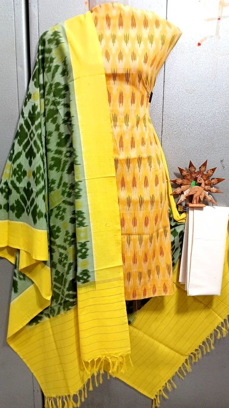 Double Ikkat Pochampally Handloom Unstitched Ethnic Dress Materials