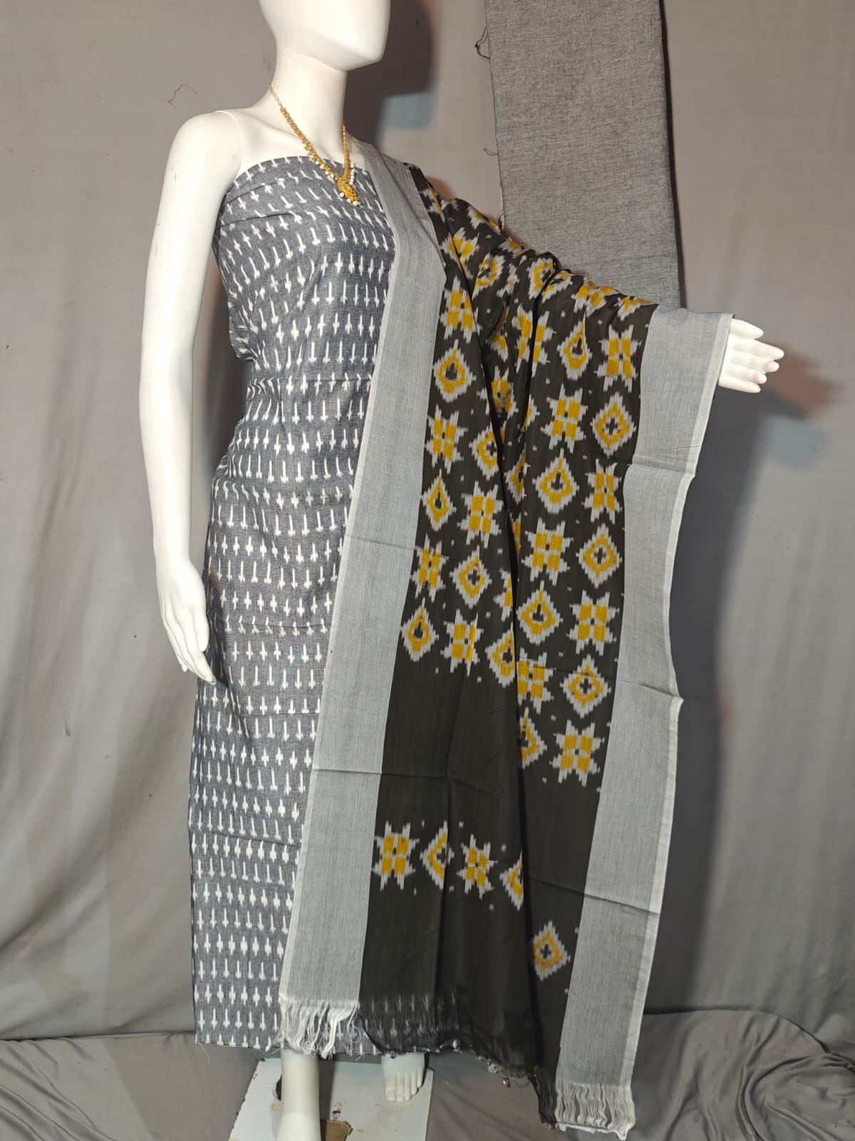 Double Ikkat Pochampally Handloom Unstitched Ethnic Dress Materials