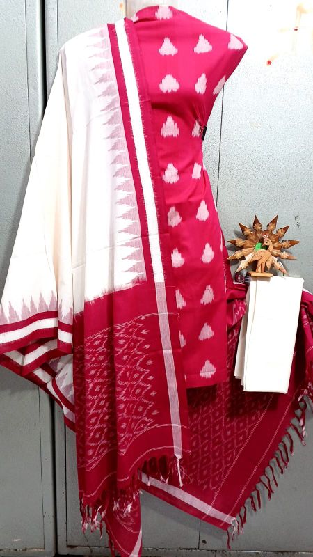 Double Ikkat Pochampally Handloom Unstitched Ethnic Dress Materials