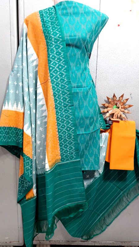 Double Ikkat Pochampally Handloom Unstitched Ethnic Dress Materials