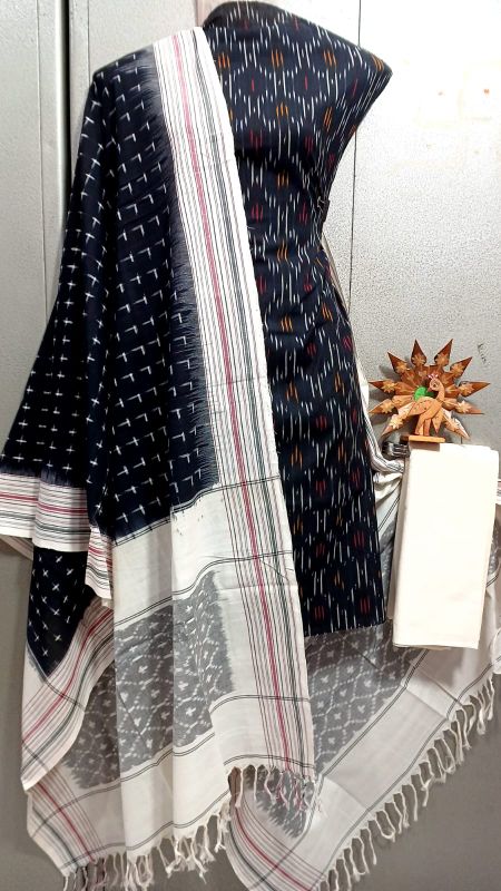 Double Ikkat Pochampally Handloom Unstitched Ethnic Dress Materials