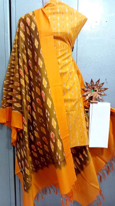 Double Ikkat Pochampally Handloom Unstitched Ethnic Dress Materials